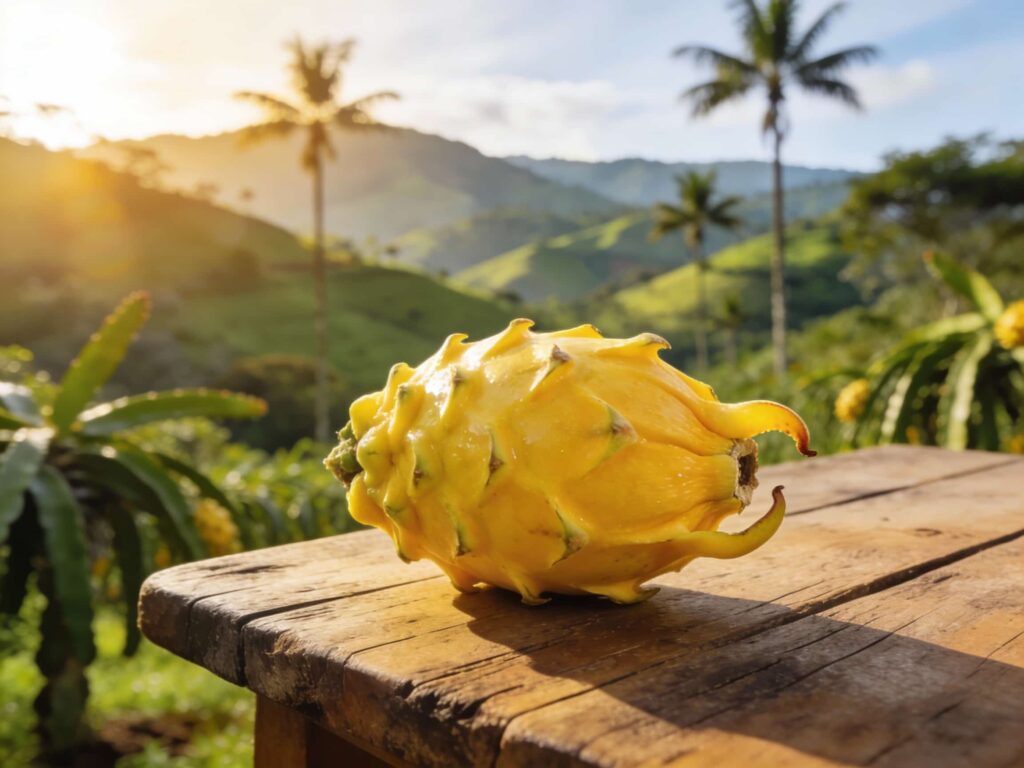 En Exportropic, no solo exportamos fruta; exportamos la esencia de nuestras montañas. Nuestra Pitaya Amarilla es considerada la “reina de las frutas del dragón”. A diferencia de sus parientes de piel roja, la variedad amarilla cultivada en los suelos fértiles de Colombia ofrece un nivel de dulzura y complejidad aromática inigualable en el mercado internacional.
